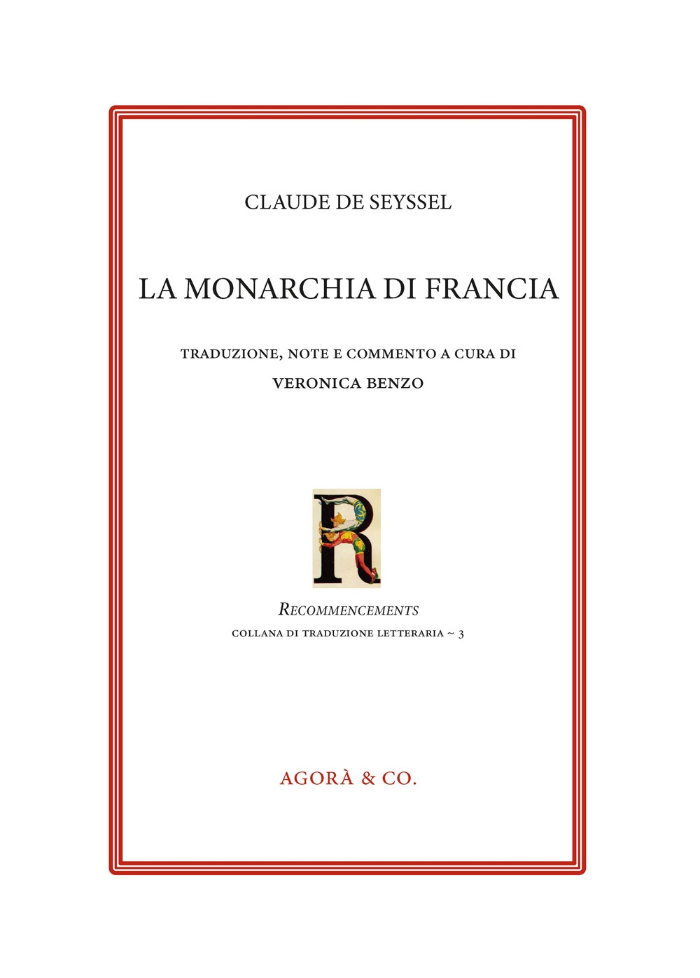 La traduzione dell’opera di Claude de Seyssel, La Monarchie de France, intende restituire al pubblico italiano un testo di grande valore storico e filosofico, contribuendo alla riscoperta di un autore che, accanto a Machiavelli, merita un posto di rilievo nella formazione del pensiero politico moderno.Pur essendo un testo fondamentale del pensiero politico francese del XVI secolo, esiste solo una versione inglese risalente ai primi anni del Novecento, mentre l’unico tentativo di traduzione italiana è rappresentato da un manoscritto del Conte di Canossa, Vescovo di Baiussa, oggi conservato presso la Biblioteca Vaticana. L’opera di Seyssel offre una riflessione lucida sulla struttura e i principi del governo monarchico francese, anticipando temi che saranno poi sviluppati da altri autori del pensiero politico europeo. Di particolare rilievo è il parallelismo con alcune idee espresse da Niccolò Machiavelli nel Principe: sorprende constatare come, nello stesso periodo storico, due pensatori appartenenti a contesti nazionali diversi — l’Italia e la Francia — condividessero riflessioni affini sul potere, la virtù e la ragion di Stato.| Autore | Claude De Seysse |